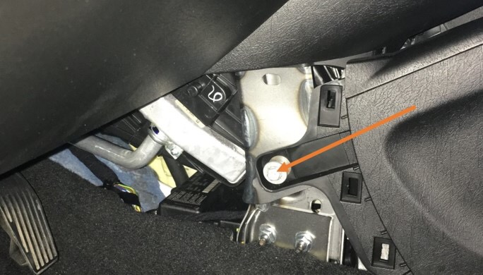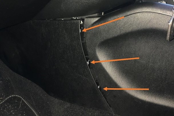 An den drei stellen sind die Klipse zu finden. Auf der Beifahrerseite genauso. Dahinter entdecken wir jeweils eine Sechskantschraube die raus muss.