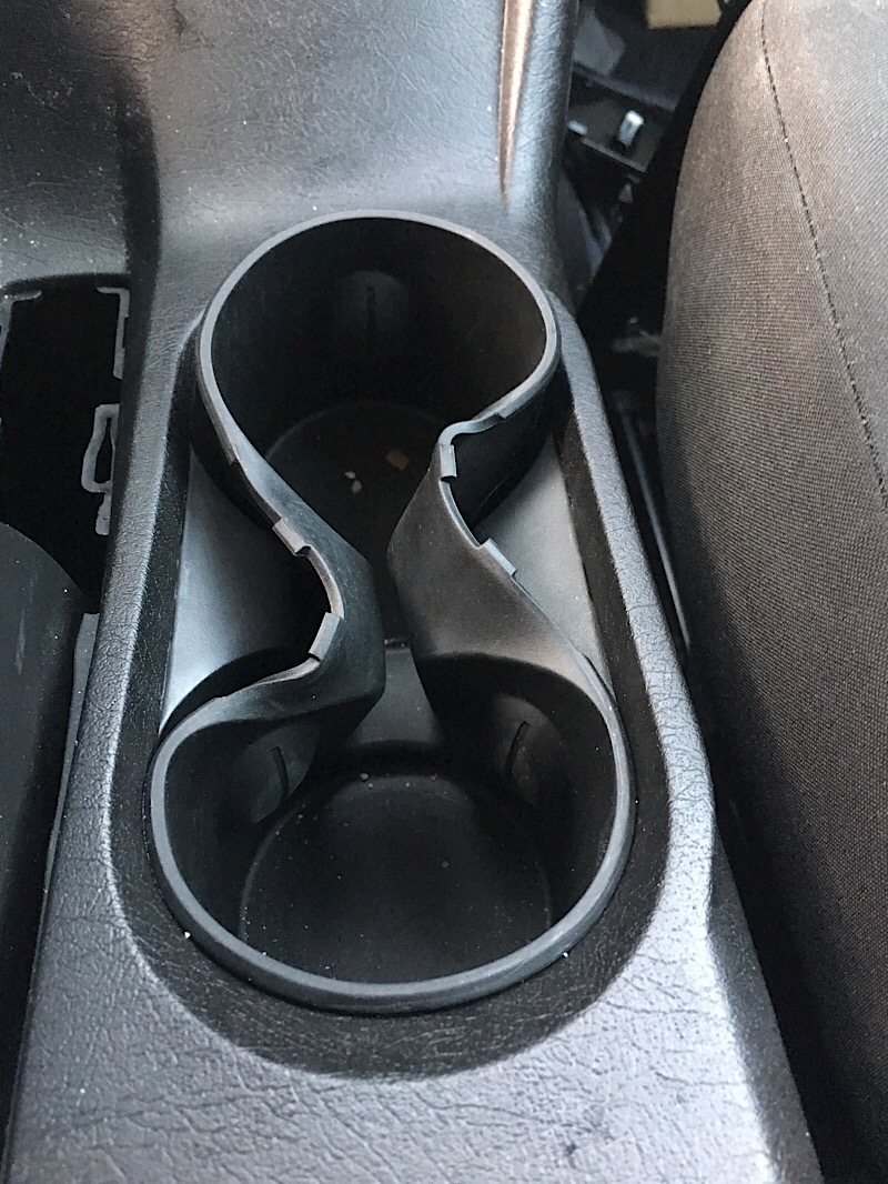 Sind die Schrauben raus widmen wir uns dem Getränkehalter. Die wie ich dachte Gummibeschichtung ist in Wirklichkeit ein Gummieinsatz, welchen man mit einem kleinen Rakel aus den Ritzen ringsherum lösen kann. Anschließend bekommt man ihn leicht raus. Das ganze sieht dann so aus.