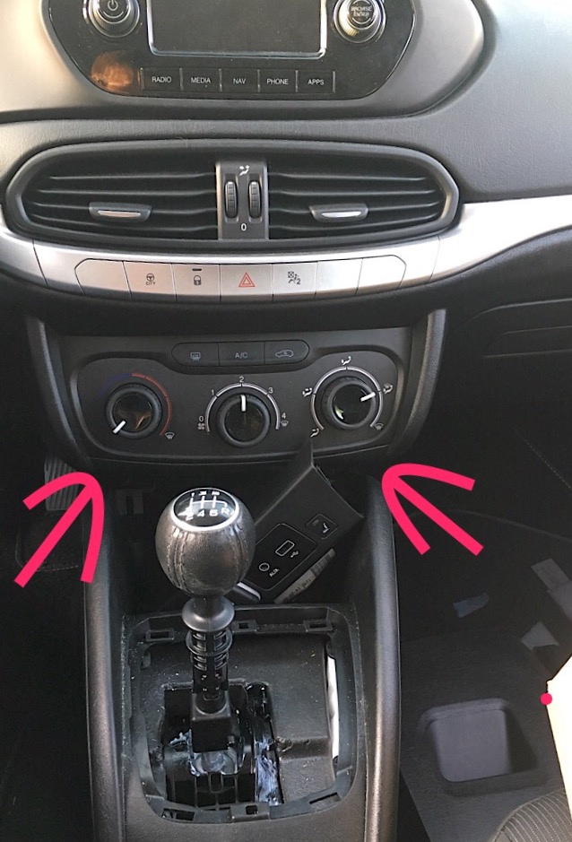 Darunter versteckt sich die letzte Schraube, die ich fluchend tagelang gesucht habe. Jetzt müsst ihr die Blende mit dem USB-AUX uns Strom wie schon vorher beschrieben ausbauen und am besten alle Stecker ziehen. Am Schalthebel den sack öffnen und an der Handbremse die kleine Abdeckung entfernen. Jetzt fehlen nur noch zwei kleine Klipse zwischen uns und dem gelungenen Ausbau des Tunnels.