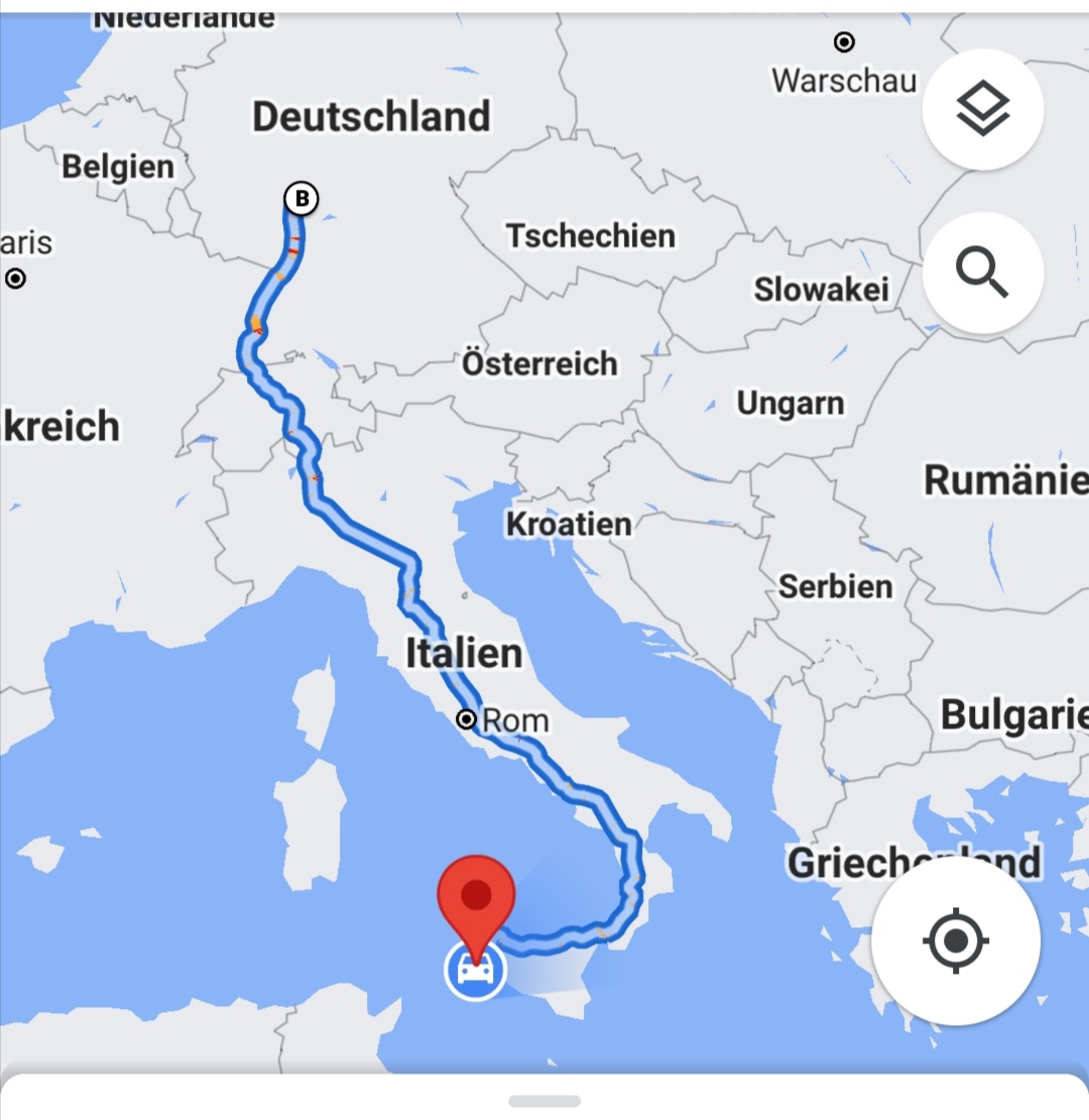 Aber am Samstag geht's die guten 2300 km zurück, zuerst Frau und Kind nach Palermo an den Flughafen bringen und dann weiterfahrt Richtung Deutschland ![]()