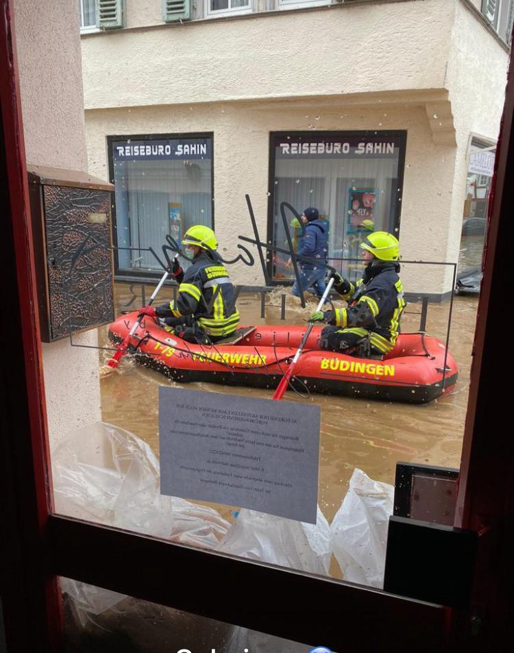 Hier steht schon Feuerwehr parat an den relevanten Stellen.In Büdingen war der Feuerwehr schon im Schlauchboot unterwegs..