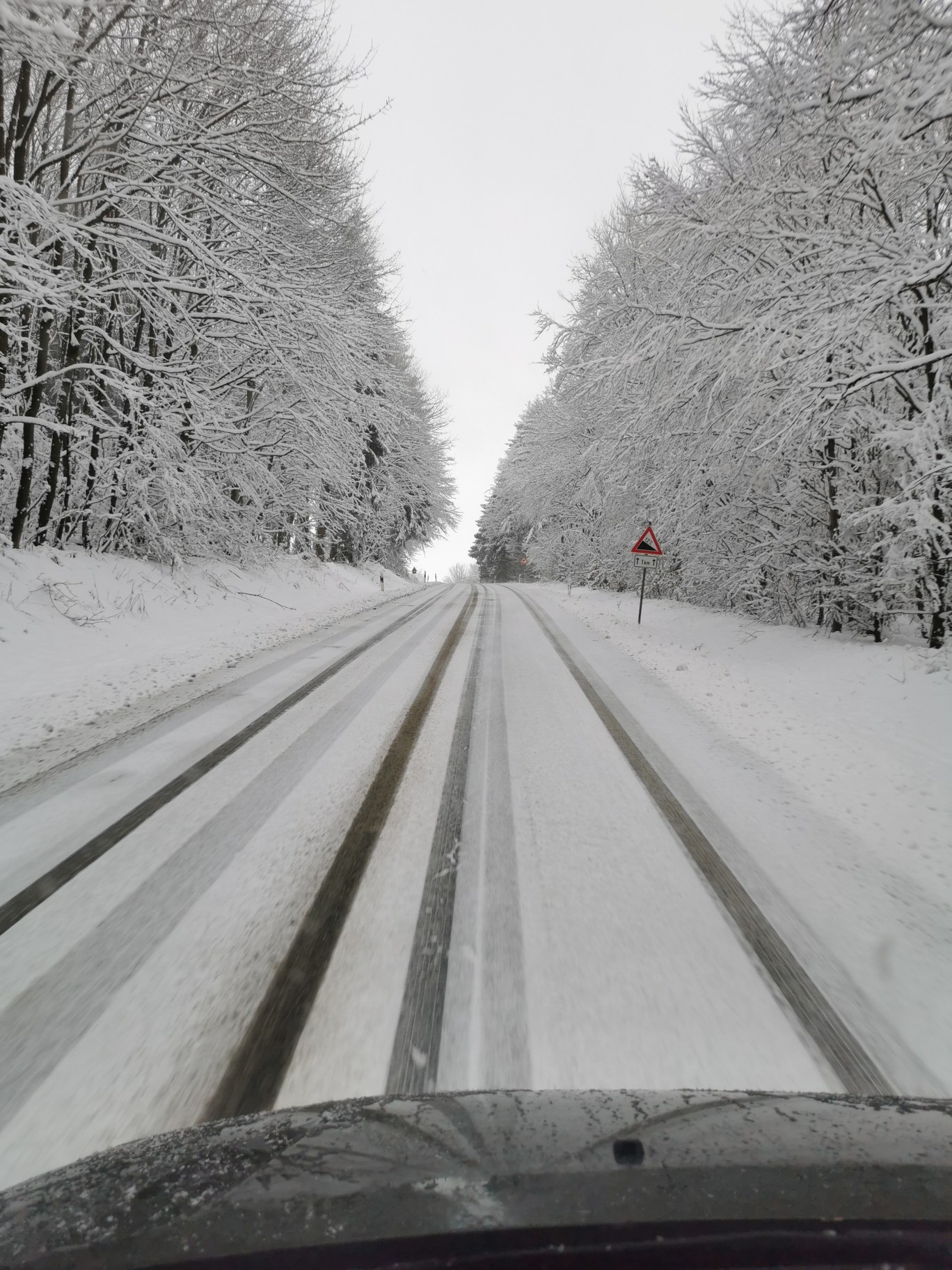 Hier auch starker Schneefall in Schotten. Straßen sind teilweise unbefahrbar.