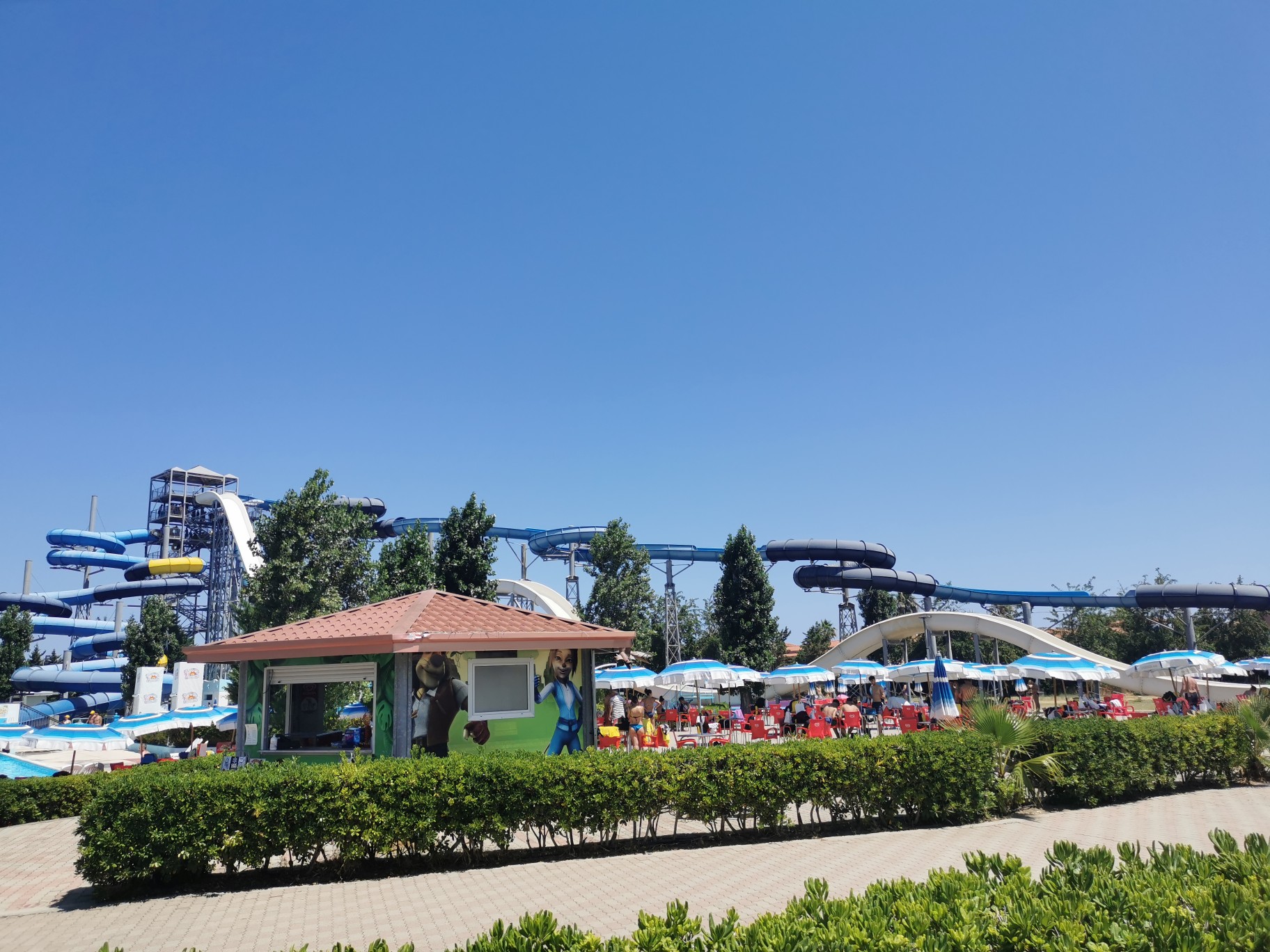 Also eine Bräune hätte ich auch gerne, stattdessen laufe ich seit heutemittag rum wie Mr. Krebs. Ich war heute fast 5 Std im Aquapark hier in Kalabrien. Trotz mehrfachen eincremen mit Factor 50+ sehe ich aus wie ein Lachs... Trotzdem hat es im Park spaß gemacht. Bin den ganzen Zeit mit die Tochter von eine zur andere Rutsche gelaufen. Jetzt bin komplett platt