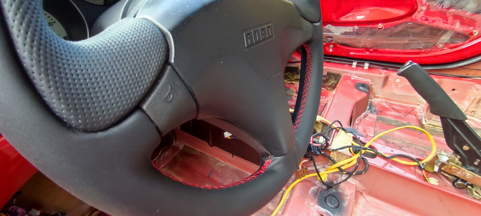 Heute ist die von mir bestellte Lederausstattung für das Brötchen gekommen. Leider hatte ich wenig Zeit. Jedoch für eine Türverkleidung das Lenkrad und den Schalthebel hat's gereicht .