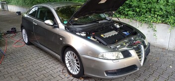 vielleicht hast Du es noch garnicht mitgekriegt, dass der Kauf Deines Alfa GT mich so ein bisschen angestachelt hat. Deshalb war ich gestern am Bodensee und hab mir einen wunderschönen Alfa Spider 2.2 JTS 16 V Executive geholt. Petra und ich sind mit dem Tipo hingefahren und haben den Wagen gleich mitgenommen.