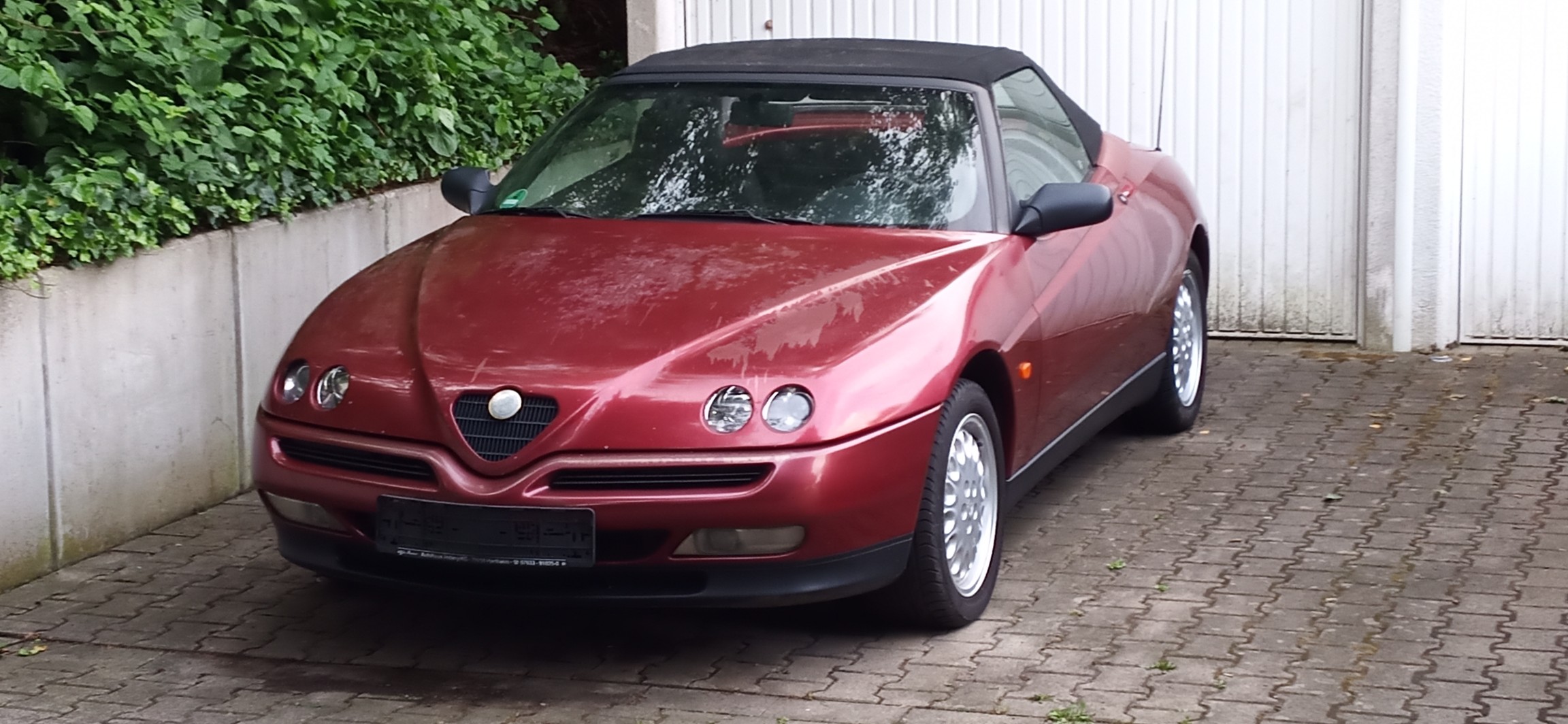 Was treibe ich aktuell an einem Corona Tag?Momentan beschäftige ich mich zusammen mit meinem Sohn Daniel mit der Nummer Drei. Nummer Drei deswegen weil dies der dritte jemals produzierte 916 Spider weltweit ist. Der Wagen wurde Monate vor der Markt Einführung in Deutschland zugelassen und war ein Prototyp welcher von einem Händler in Italien geholt und auf seinen Namen zugelassen wurde. Vieles an dem Fahrzeug weicht von der späteren Serie ab .
