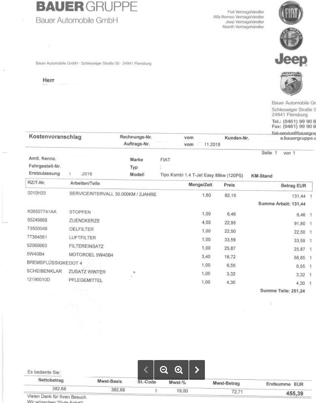 Anbei mal die Kosten der 30.000 km / 2 Jahre Inspektion ganz aus dem hohen Norden.