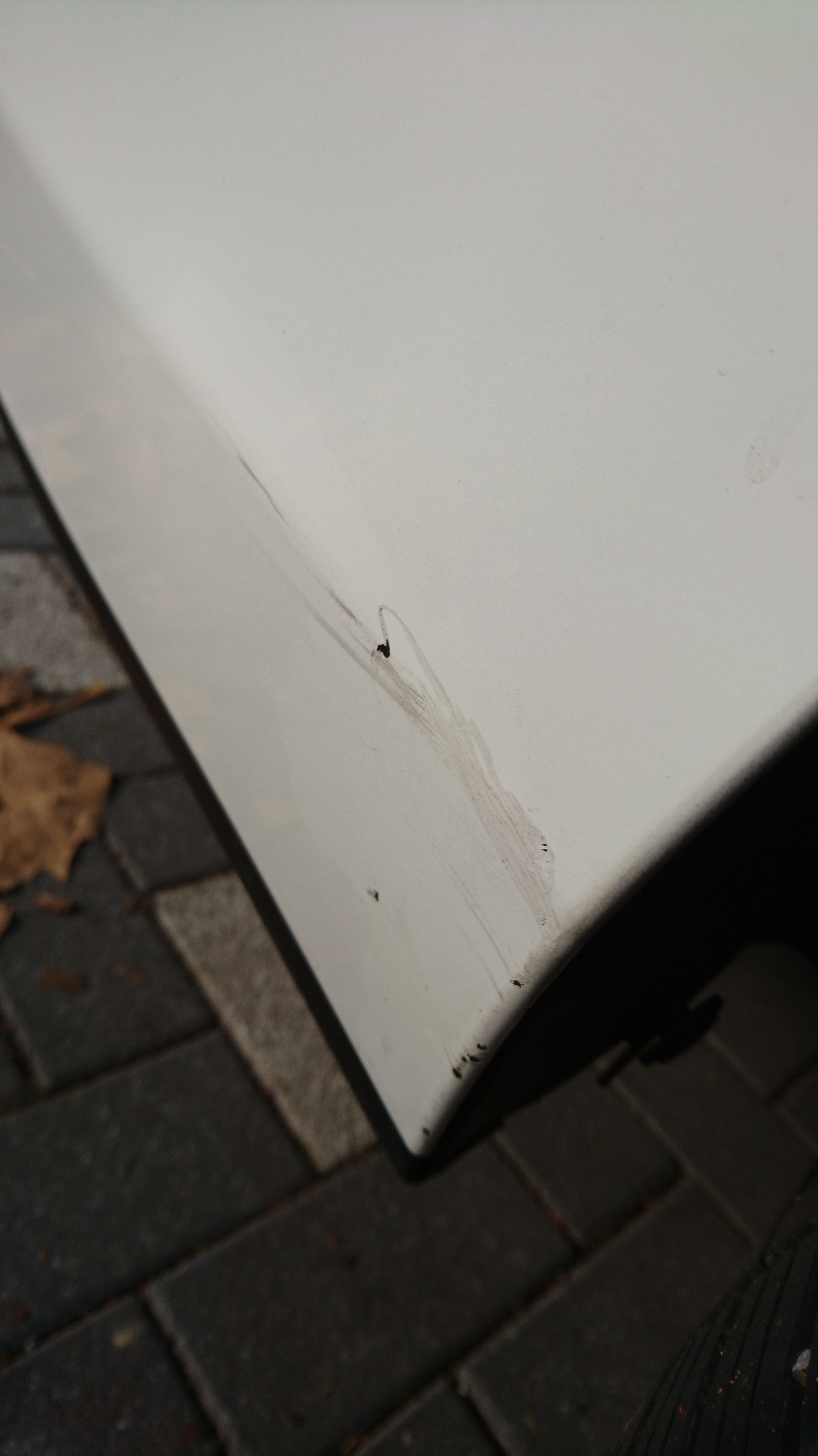 Aber auch toll, hab das Auto nicht Mal ne Woche, und da hat so ein Spinner seine Pedale vom Fahrrad in den rechten hinteren Radkasten vom Auto gefeuert