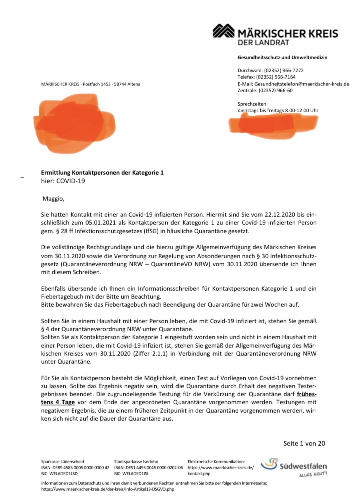 Danke an alle, ist es anstrengend aber zuhause bleiben zum Glück haben wir ein Hund der raus muss Max 10 min Aber darf keine Leute zum Glück leben wir direkt Wald manni kennt wo ich weiß Wohne.