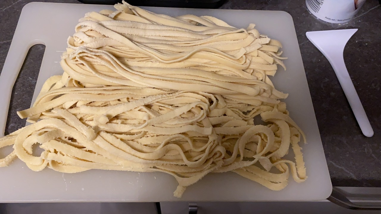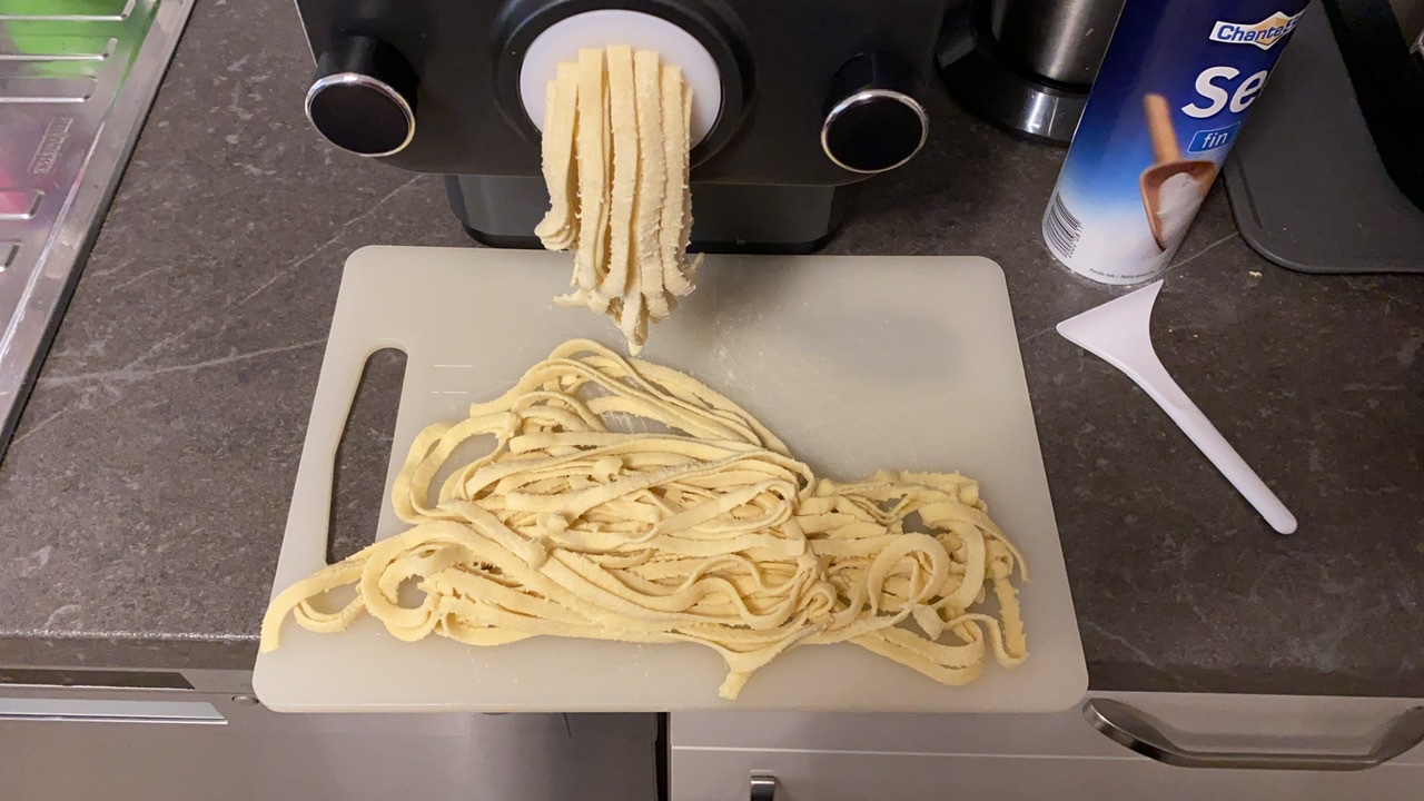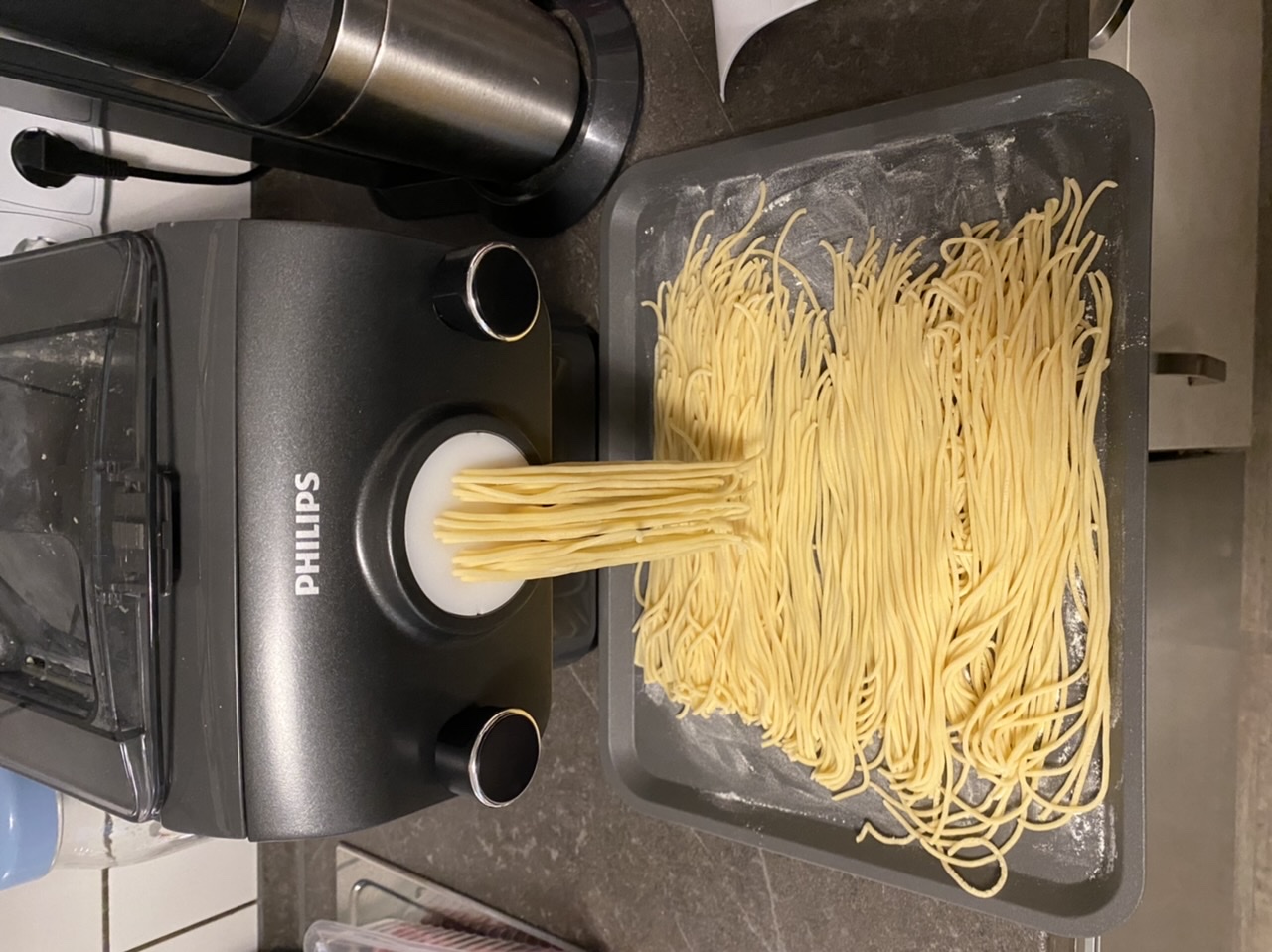 Heute frische Tagliatelle gemacht. Gerät Phillip Pastamaker sehr gut das Gerät der misch den Teig selber an alles und macht dann Pasta und sehr gut.