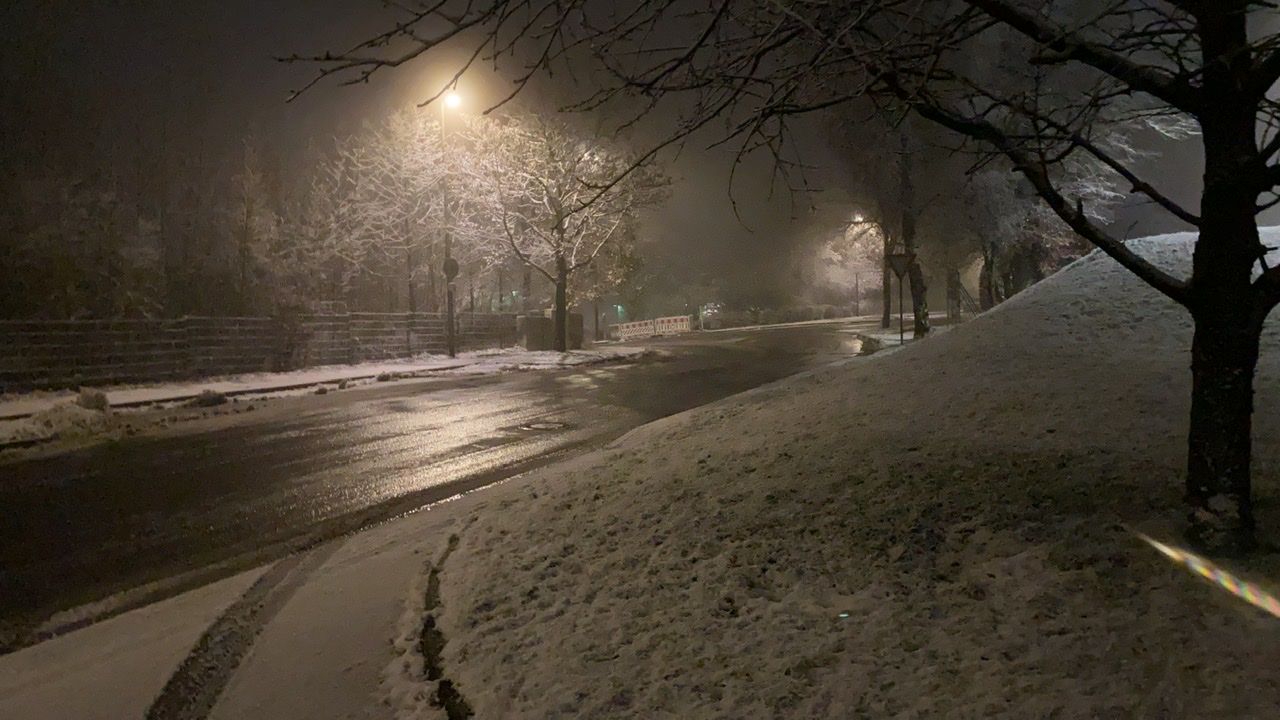 Heute morgen um 5 Uhr, leider dieses Jahr wenig Schnee.