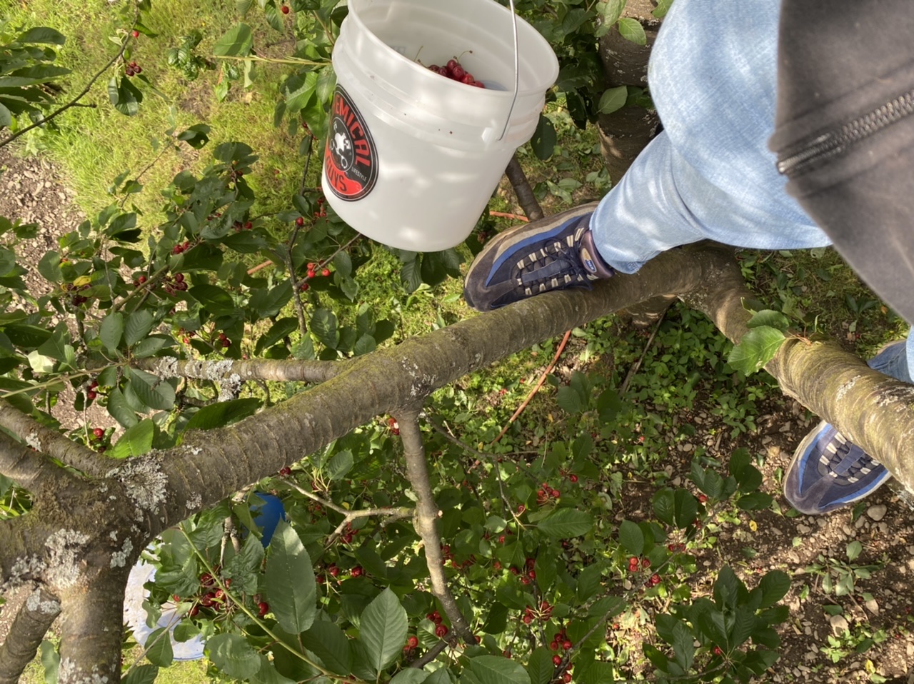 Kirsche pflücken, gib’s noch mehre Bäume beim Kollegen sein Garten die ganze Kiste sind unsere. Mal sehen wann machen aber reicht locker paar Monate aber dieses Jahr Zuviele.