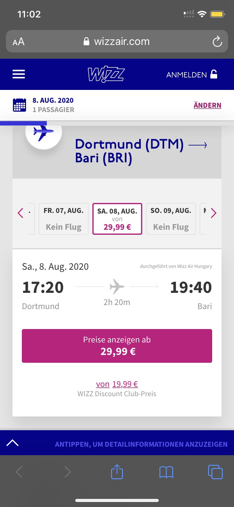 Ab denn 8 August kann Mann von Dortmund nach Bari fahren für 30€ wie billig.