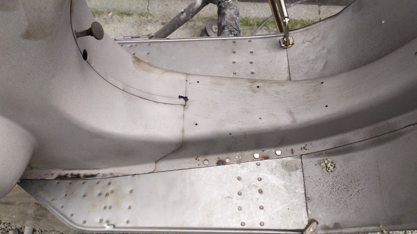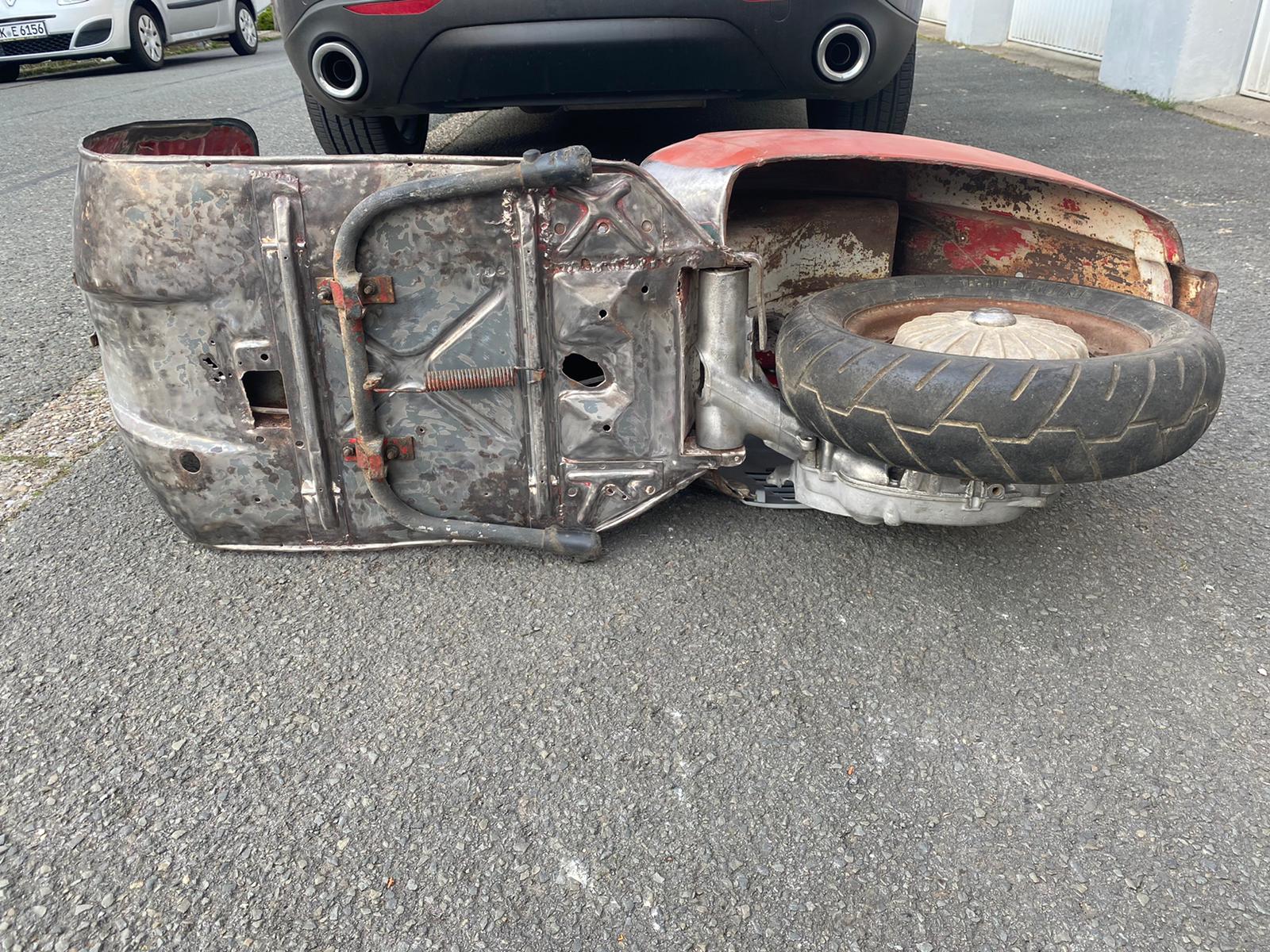 Die Vespa ist in drinne im Tunnel verrostet, Viele Löcher hat sie Mann muss komplettes Beinschild ersetzen. Hier mal Bilder so muss Mann es machen.