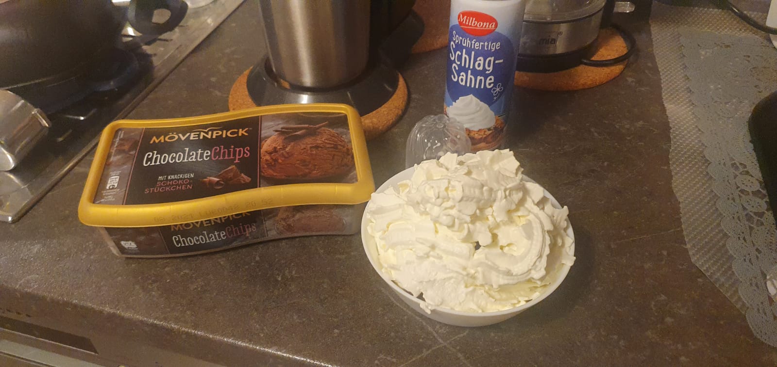 Jetzt erstmal Schokolade Eis gönnen mit Schlagsahne
