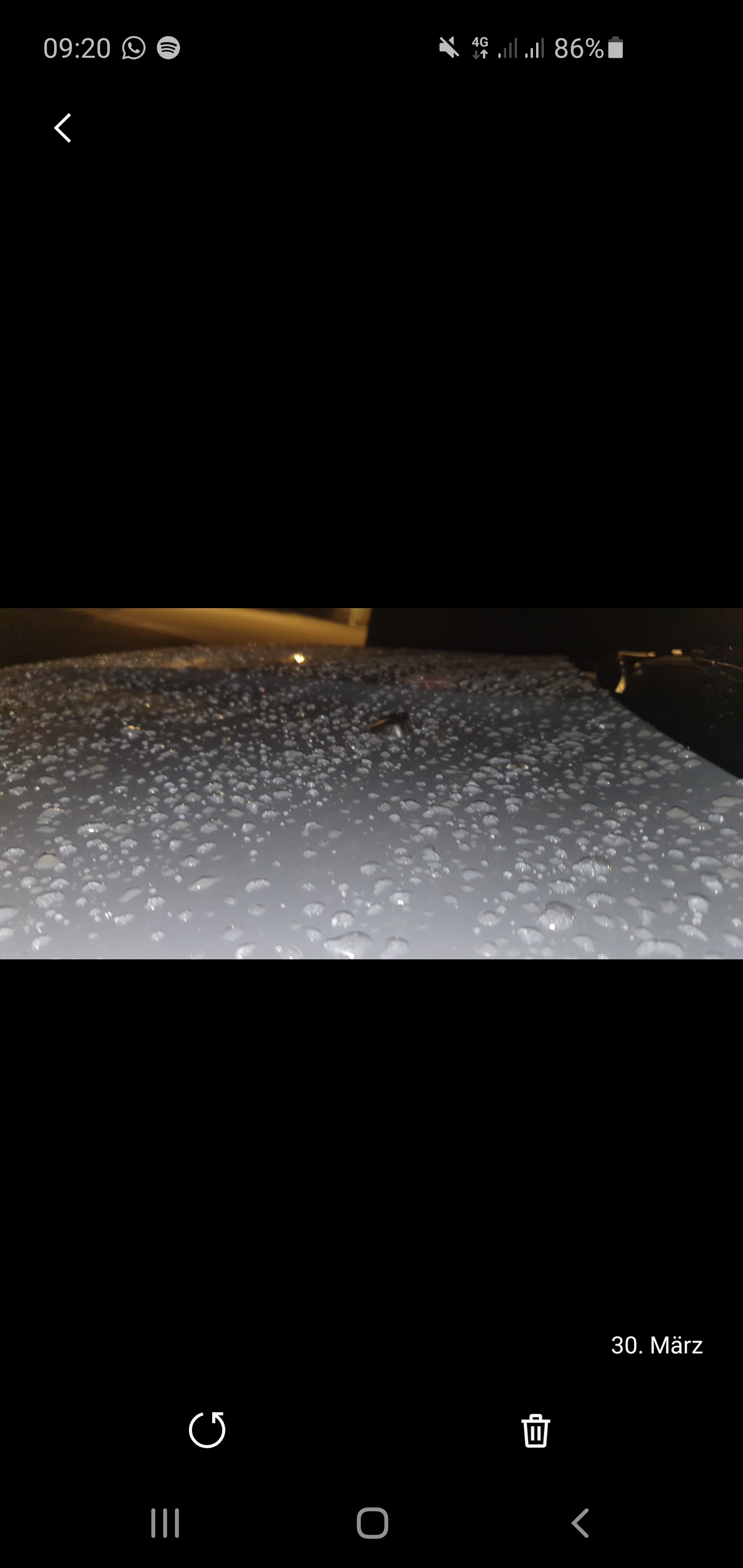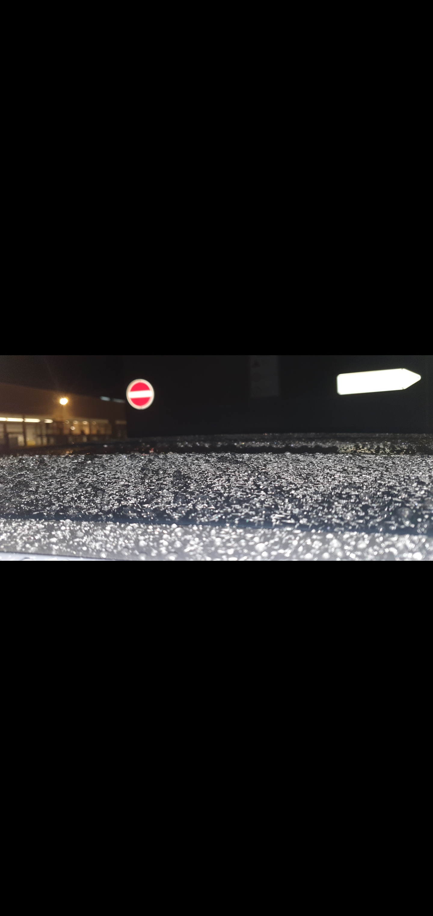 Auf die Scheiben waren dicke Regentropfen. Aber am Ende bin ich so gefahren. Waren nur Tropfen gewesen. Aber Straße alles trocken kein glatt. Alles eingefroren -