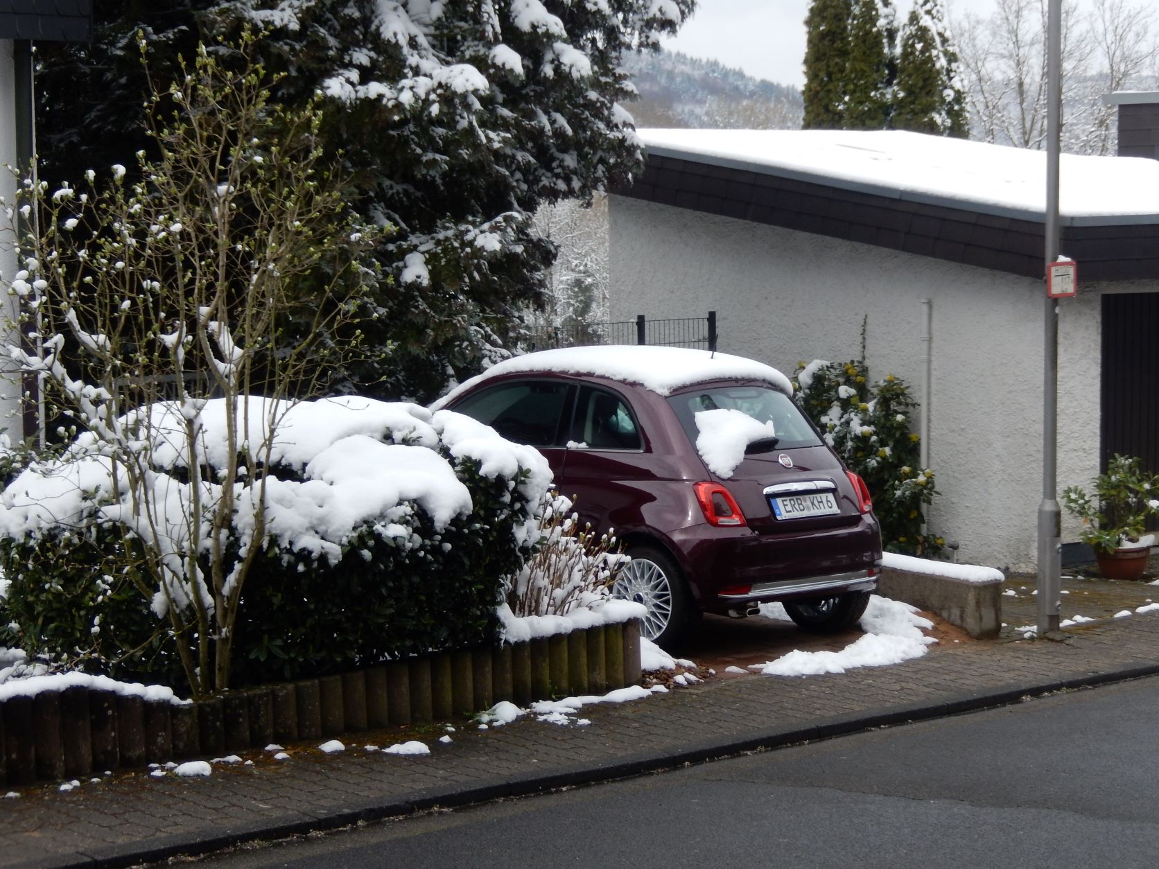 Von wegen Frühlingsausfahrt mit dem Spider. Nicht mal der 500 will aus seiner Ecke.