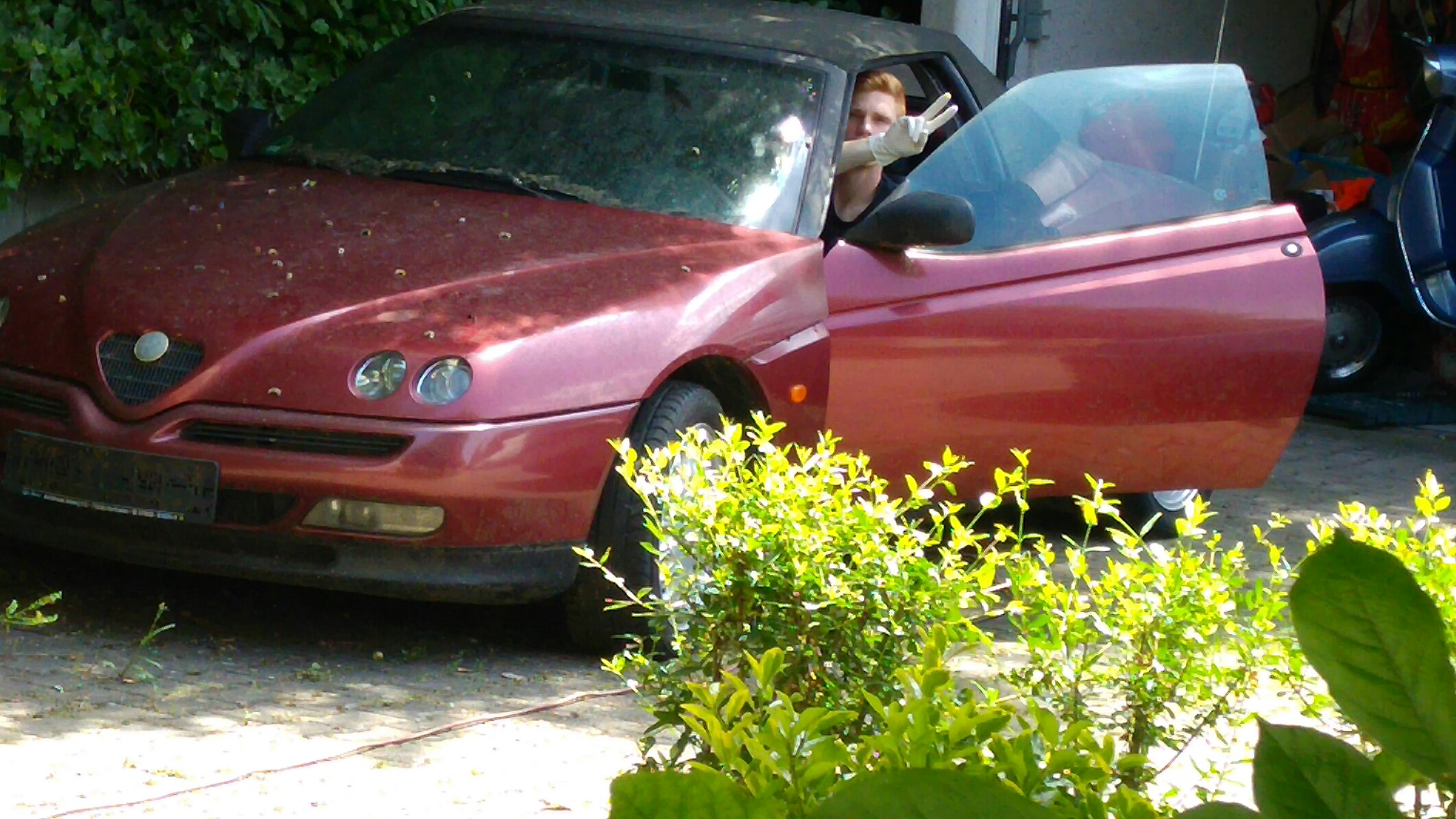 Daniel meinte vor einigen Tagen auch zu mir es sei eine Schande das ich den Wagen nicht richten würde. Als ich erwiederte machs doch selbst legte er los und ist seit dem täglich mit dem Spider beschäftigt. Alte Weisheit am Rande: ,,Zeig deinem Kind die Leidenschaft zum Automobil und es wird nie Geld haben sich Drogen zu kaufen."