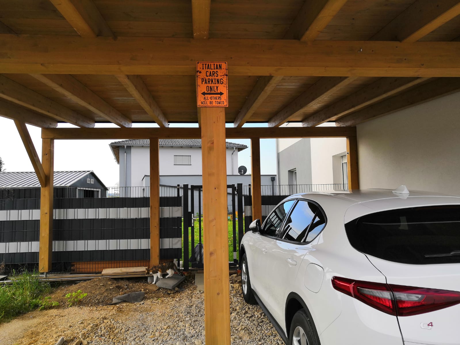 Kleines Geburtstagsgeschenk von mir an mich. Nicht das dann wieder die Koreaner und Japaner der restlichen Familie vor stehen, mein Vater hats ja inzwischen kapiert, der fährt 124 Spider, der darf da parken ![]()
