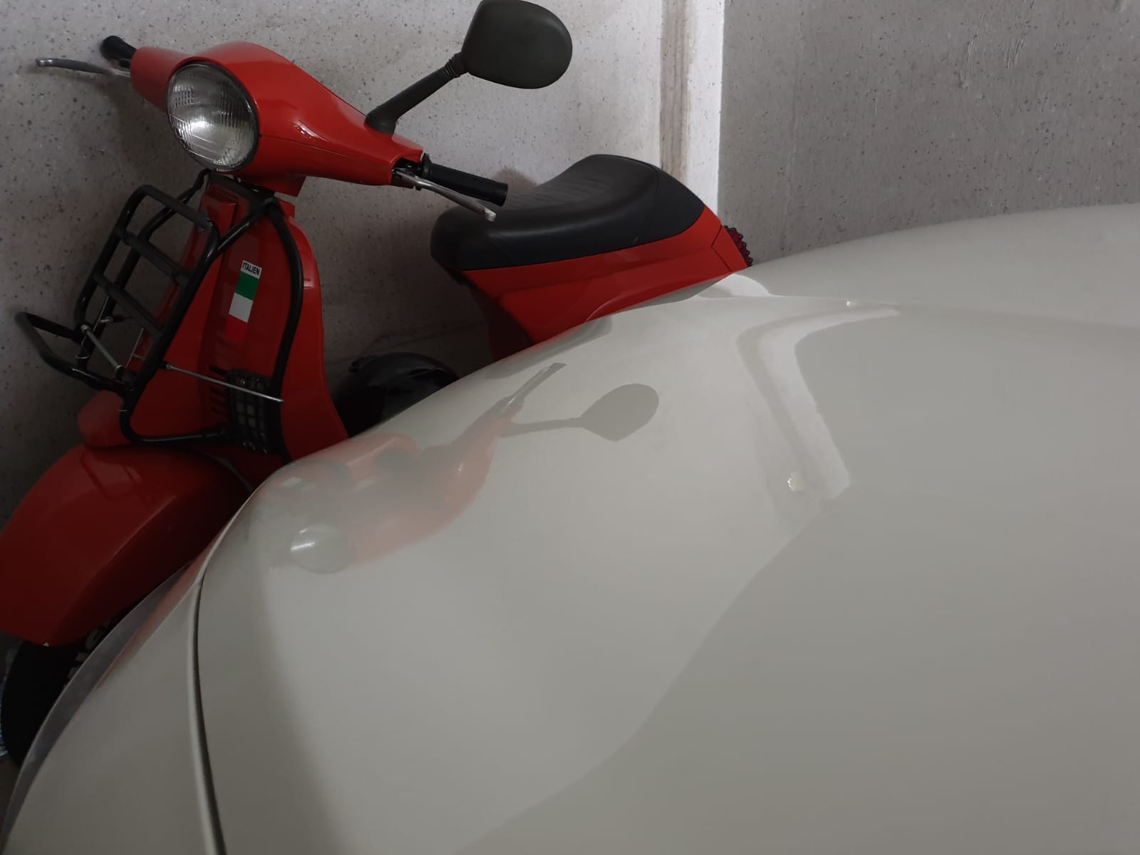 Einfach nur schön das die Vespa auf die Motorhaube drauf glänzt.